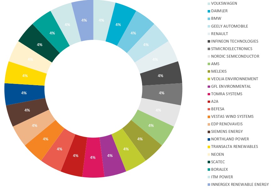 Composizione dell’indice ICF Green Technologies Select al 26 luglio 2021